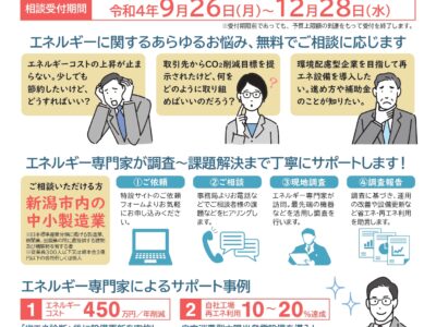 新潟市の製造業の方限定!新潟市エネルギー専門家派遣事業