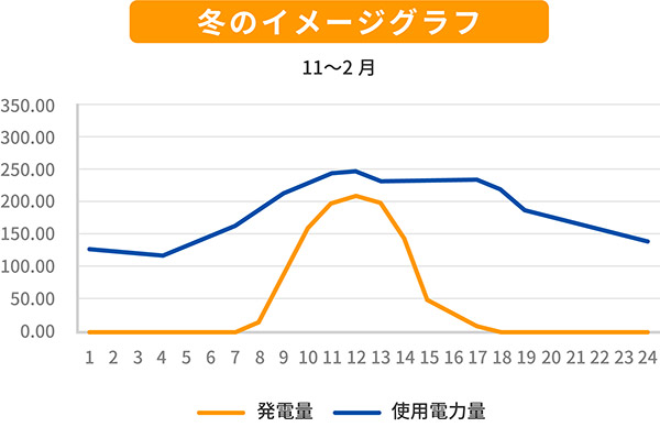 冬は太陽の日照時間が短く、他季節より発電量が落ちてしまいますが、それでもある程度の削減は可能です。