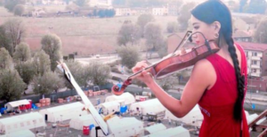 彼女はイタリア在住のヴァイオリニストで地元の病院の 屋上から懸命に