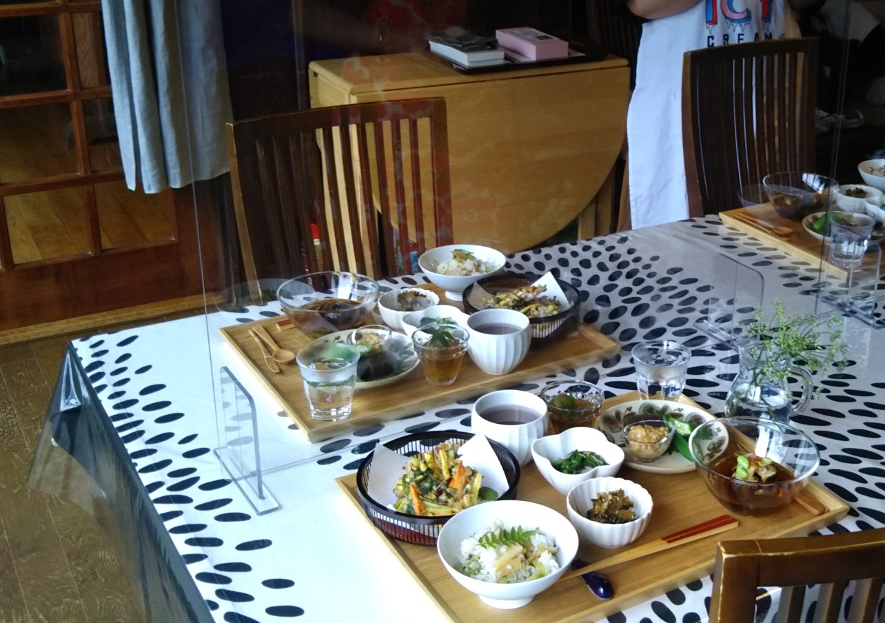 試食の際には透明の衝立越しに向かい合い、おしゃべりも控えめに・・・。以前のようにつまみ食いしながらワイワイお料理という訳にはいきませんが、とても楽しい時間をすごしています。