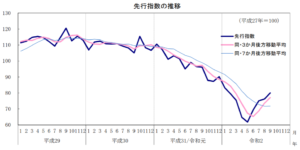 先行指数は、一致指数に数か月先行して動くことから、景気の動きを予測する場合に