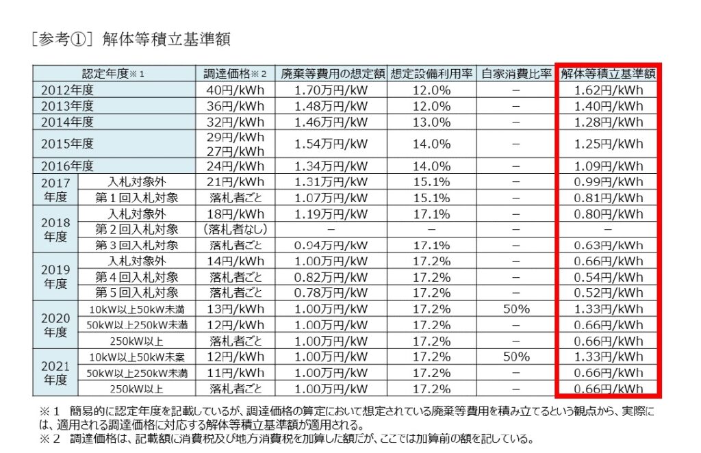 実はもともとFIT制度の買取価格には『設備の廃棄費用』が盛り込まれていました。