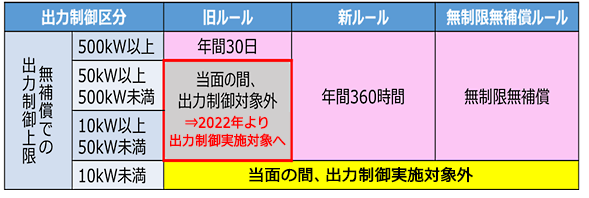→2022年の制度改正により行われることとなった出力制御