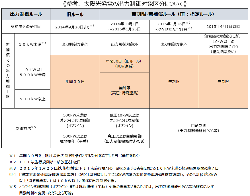 ②2014年10月1日以降の契約申込を行った太陽光発電所は『出力制御』を実施のために、