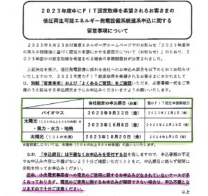 お早めに!東北電力管内2023年度のFIT制度 申請締切間近!