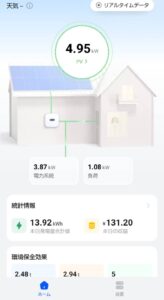 これら全て、グラフや数値で見える化されるので ※Fusion Solarアプリ ホーム画面