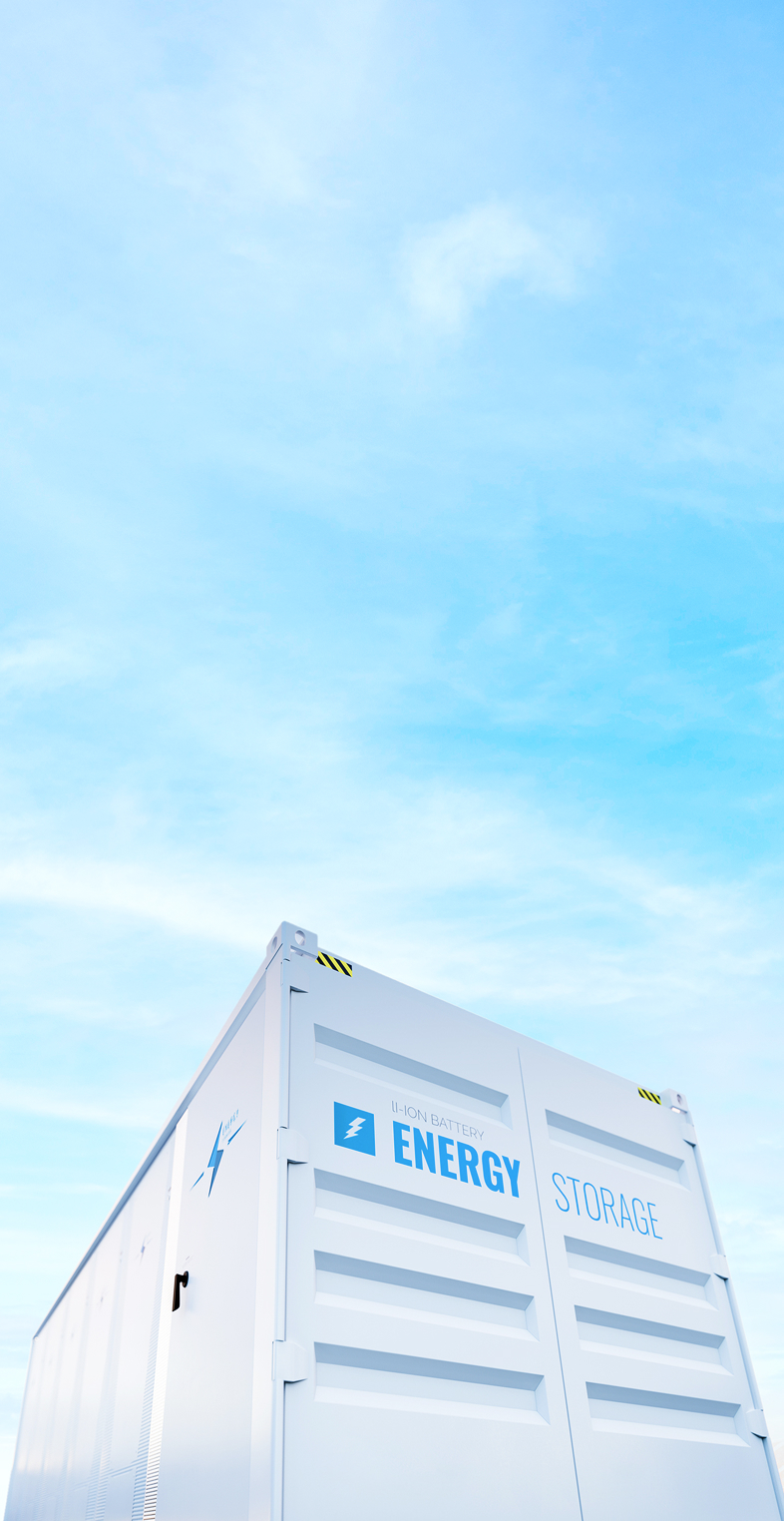 太陽光発電などで作った電気を日中に溜めて、発電しない夜間に送電網へ放電。